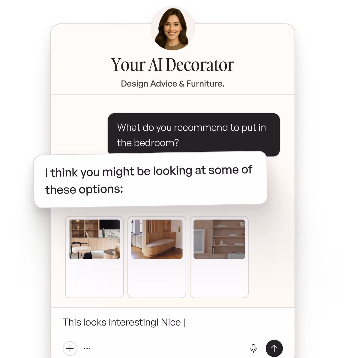 Your AI Decorator understands you better than any designer and will guide you through the process.